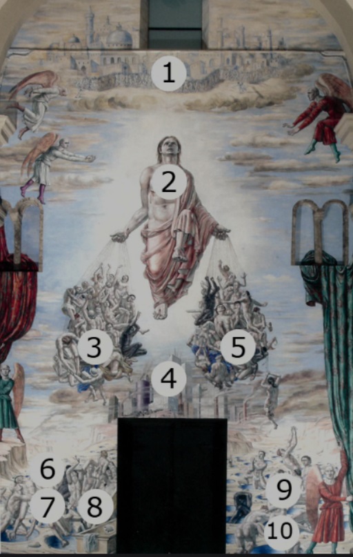 Het protestantisme en het satanisme van de Nieuwe Wereldorde weerspiegeld in de fresco van de kathedraal van Terni-Narni-Amelia (Italië). De fresco werd goedgekeurd door de toenmalige bisschop en huidige aartsbisschop Vincenzo Paglio, voorzitter van de Pauselijke Academie voor het Leven.