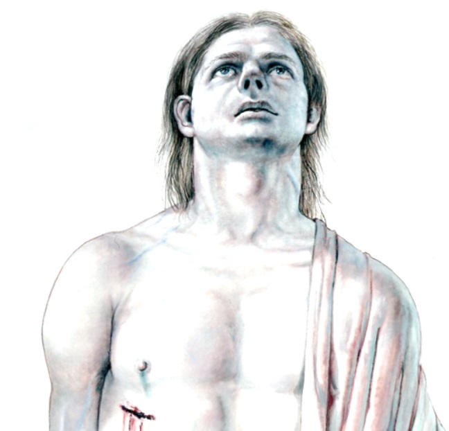 Jezus stijgt op naar de Hemel. Een kapper uit Terni poseerde voor het gezicht van Jezus