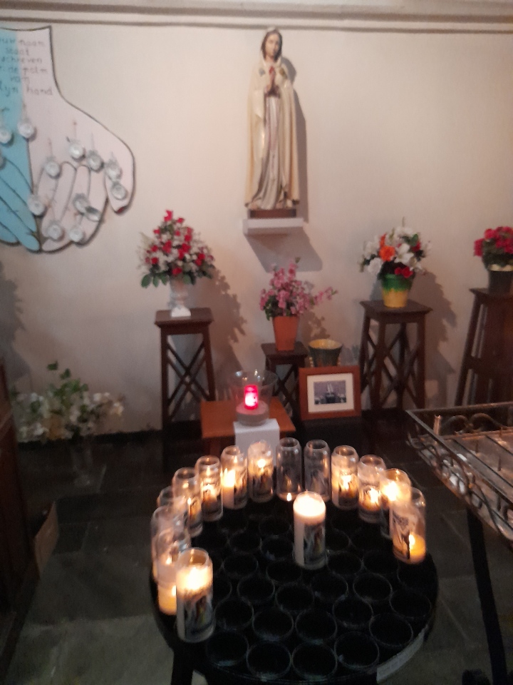 We hebben een voorlopige locatie gevonden om deze tijd te overbruggen in één van de zalen van ‘De Linde’. Een mooie goed toegankelijke zaal die we zelf mogen inrichten met ons kapelmeubilair. Daar zijn we zeer tevreden mee en we danken ieder die zich ervoor ingezet heeft.