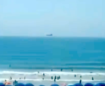 Date of sighting: June 7, 2016 Location of sighting: Cocoa Beach, Florida, USA This looks to me like a UFO that has risen out of the water and is hovering over the water. UFOs often try to discuss themselves, thats not news to most of us. They make themselves look like meteors as they enter the atmosphere. They make themselves look like passengers jets, but morph. Now we have evidence that they make themselves look like ships...but they fly. You see, they can play their tricks all they want, but sooner or later they get caught. Scott C. Waring www.ufosightingsdaily.com Eyewitness states: The video captured the rare Fata Morgana Mirage at Cocoa Beach, Florida.