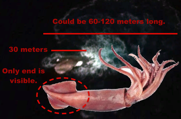 This looks like the Kraken. I used Google ruler and it says this is 30 meters (100 feet) from head to end, but the end looks like just the mid area of a giant squid, which means it could be 60+ meters long with tentacles. That sounds like a Kraken to me. Maybe the stories about the giant monster of the deep are all true. A lot of storers are based on truths. I think we found the Kraken.