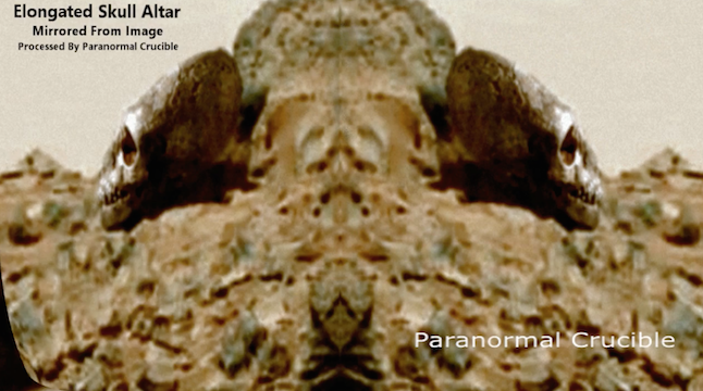 Paranormal Cruciblestates: I decided to take a second look at this artifact and do a little more enhancing and re-building to get a better idea of what it actually was. It is an elongated skull, possibly thousands of years old in my opinion. I also mirrored the image and discovered a possible skull encrusted altar with a pyramid either side, and a possible alien head-dress. I will be enhancing the mirrored image in a few days and will either create a video report on it or i will post the image on my facebook page, so far its very interesting. Thanxx