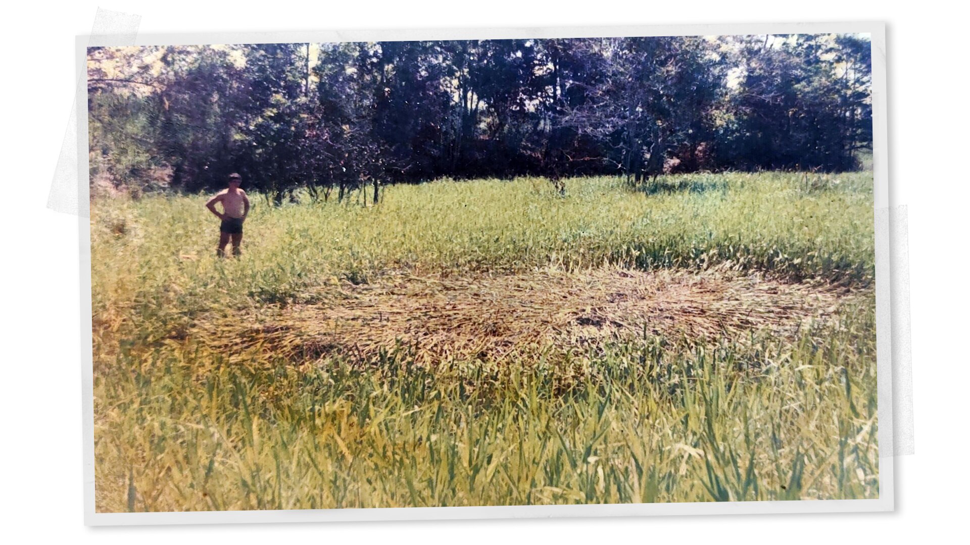 The UFO landed right in the meadow where he was going to mow the grass and suddenly, unexpectedly, someone grabbed him from behind and lifted him into the air.