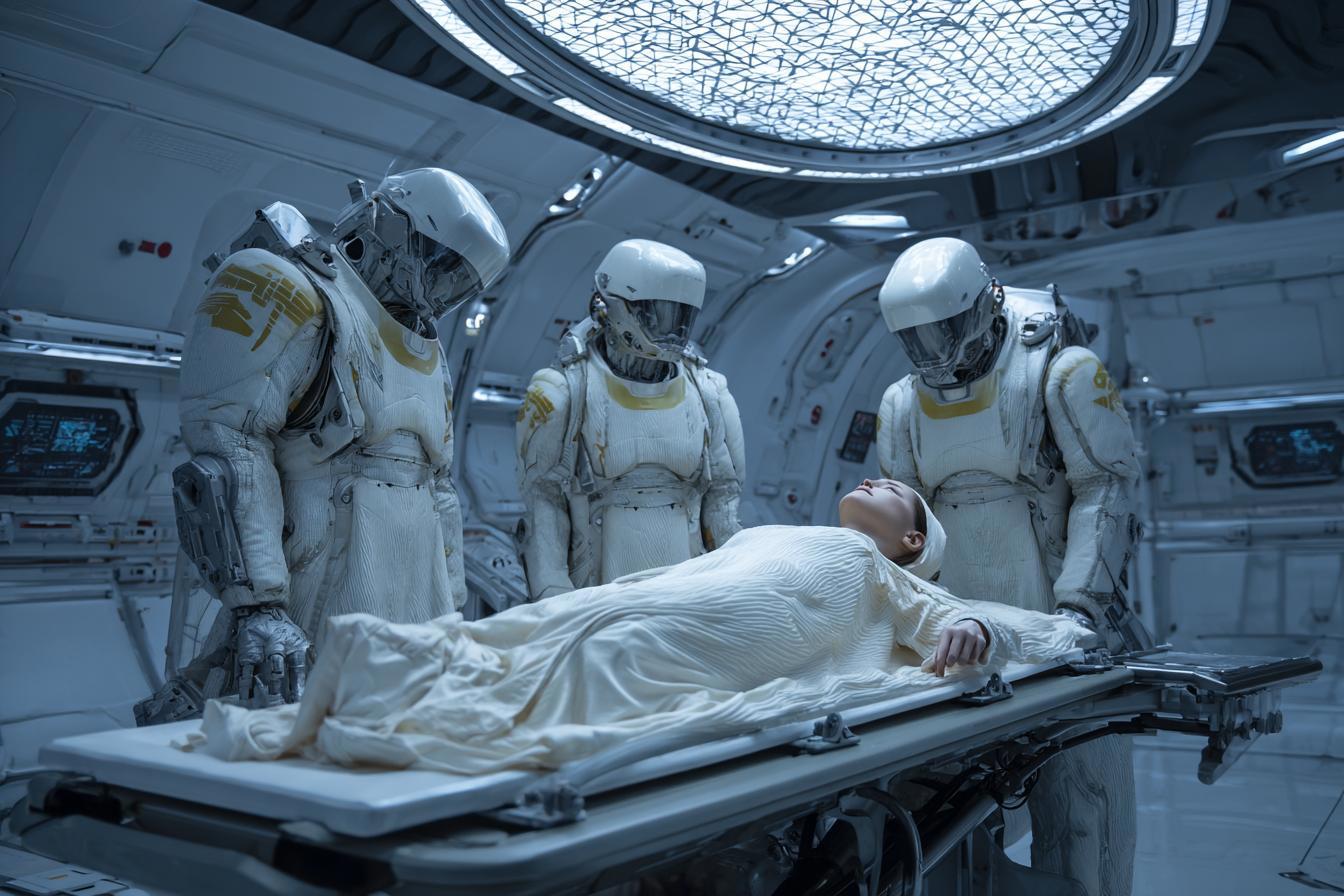 Three men, all dressed in light blue tunics, skullcaps, long elbow-length gloves, aprons, and facemasks, entered the room. To Versacci’s horror, these men resembled surgeons who were about to operate. The men approached the table and placed a strange cube-like device on her body, which glowed brightly as soon as it made contact with her body. Unable to move, Versacci took in as many details as she could while these procedures were carried out. She recalled, for example, that the men’s eyes were “more rounded than human eyes”, and, of more concern, they were seemingly completely devoid of any emotion. They methodically took samples of her hair, nails, skin, and blood, occasionally nodding at each other as they did so. Although Versacci didn’t feel any pain during the procedures, she recalled feeling extremely cold throughout. However, as soon as the examination was over, another large blanket was placed over her, and she warmed up instantly.