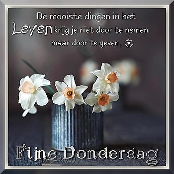 En inderdaad het ziet er naar uit als je die grijze lucht ziet dat het weer zoiets als een grijs regendagje zal worden alhoewel ... ben nog steeds geen weer voorspeller hoor ! Maar regenweer of nie... " Laat de zon in je hart schijnen vandaag " en met zoiets kan je dag niet meer stuk!Voila sè we zijn al weer donderdag die week is ( weeral ) ver gevorderd ( of er nu gepruttel komt dat die tijd veel te vlug voorbij gaat ??? vergeet dat maar we genieten als senioor iedere dag van het nu en wat er nog volgt zullen we dan wel zien !Dus... wens ik jullie een heel gezellige dag en voorazal ... Geniet ervan !