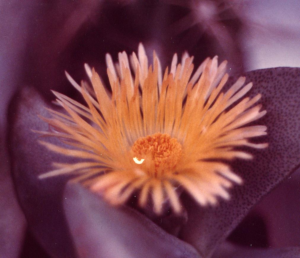 dit is een Stapelia ook wel aasbloem genoemd,als men aan de bloem ruikt stinkt het naar verrot vlees. daar komen dan de insecten op af, als de bloem dan bestoven is groeit er een zaadvrucht aan.