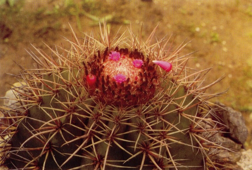 Klik op de afbeelding om de link te volgen dit is een Melocactus calderanus met 3 keine bloemjes en 3 zaadbesjes.