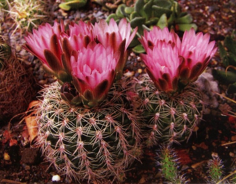 dit zijn de rode bloemen van de Gymnocalysium multiflorum.