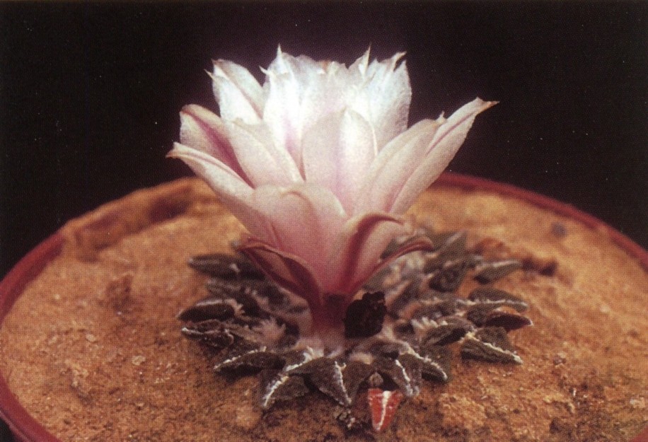 dit is de rode bloem van de Ariocarpus flissuratus.